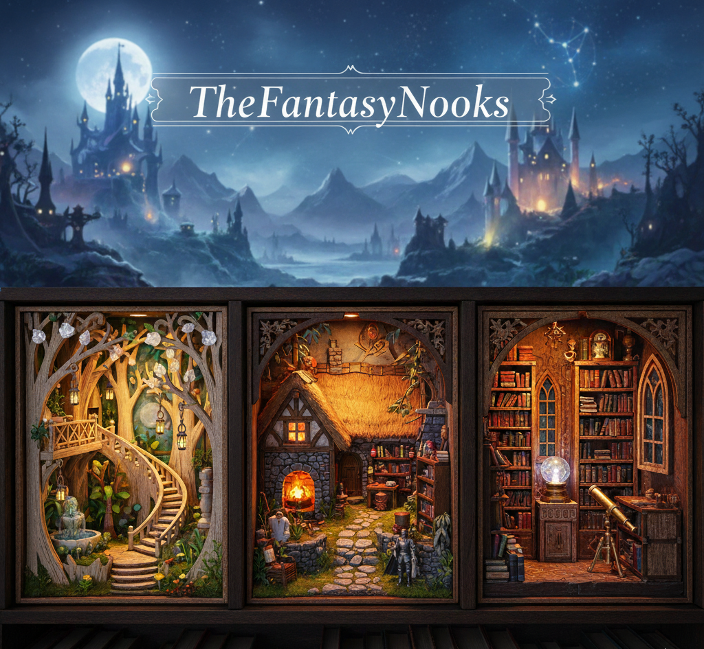 Hand-crafted miniature realsm inspired by iconic fantasy worlds, glowing softly like real magic. Bring your shelf to life and escape into adventure every time you walk by ✨